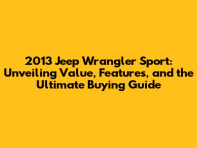 Hey Jeep enthusiasts! So, you're curious about the 2013 Jeep Wrangler Sport and want to know its value, right? Well, you've come to the right place! We're diving deep into everything you need to know about this iconic off-roader, from its price range to the features that make it a legend. Whether you're a seasoned Jeep owner or a newbie dreaming of open trails, this guide is packed with insights to help you make an informed decision. Let's get started, shall we?