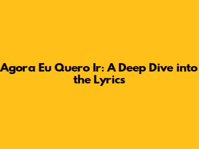 Hey guys! Today, we're diving deep into the lyrics of a song that has touched the hearts of many: "Agora Eu Quero Ir." This beautiful song, known for its emotive melody and profound lyrics, has resonated with listeners across Brazil and beyond. Whether you're a long-time fan or just discovering this gem, understanding the lyrics can unlock a deeper appreciation for the song's message. Let's get started!