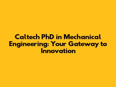Caltech PhD In Mechanical Engineering: Your Path To Innovation
