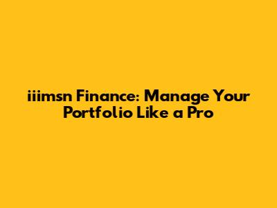 Iiimsn Finance: Manage Your Portfolio Like A Pro