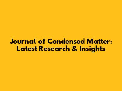 Journal Of Condensed Matter: Latest Research & Insights