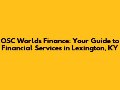 OSC Worlds Finance: Your Guide To Financial Services In Lexington