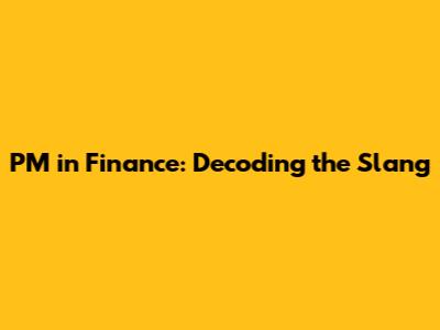 PM In Finance: Decoding The Slang