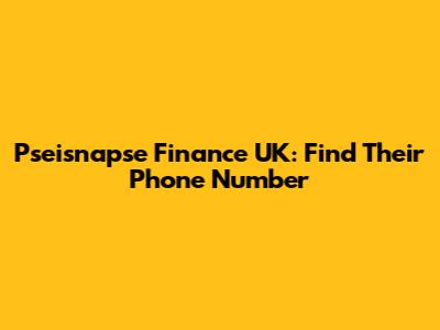 Pseisnapse Finance UK: Find Their Phone Number