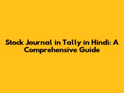 Stock Journal In Tally: A Comprehensive Guide (Hindi)