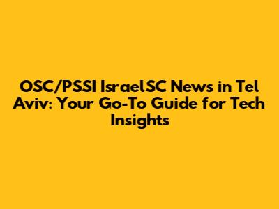 Hey everyone! Are you looking for the latest OSC/PSSI IsraelSC news in Tel Aviv? Well, you’ve come to the right place. Tel Aviv, often called the Silicon Wadi, is a vibrant hub of innovation and technology. Keeping up with the fast-paced changes and developments can be challenging, but that's where we come in. Let’s dive into what makes the OSC/PSSI IsraelSC so important and why staying informed is crucial for anyone involved in the tech scene here.